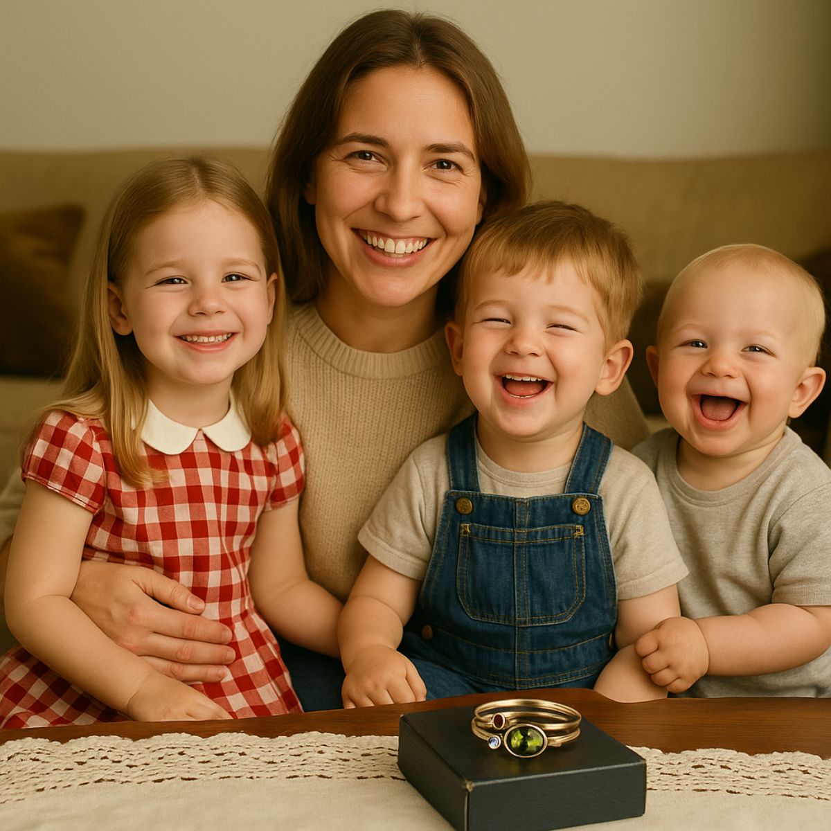 Avec la Naimée™ | Bague de Naissance et d’Amour, tu portes l’amour de ta famille chaque jour près de ton cœur. Chaque pierre raconte une histoire – des souvenirs précieux aux liens qui ne s’effacent jamais. Un symbole intemporel d’amour, délicatement capturé dans une bague éclatante.